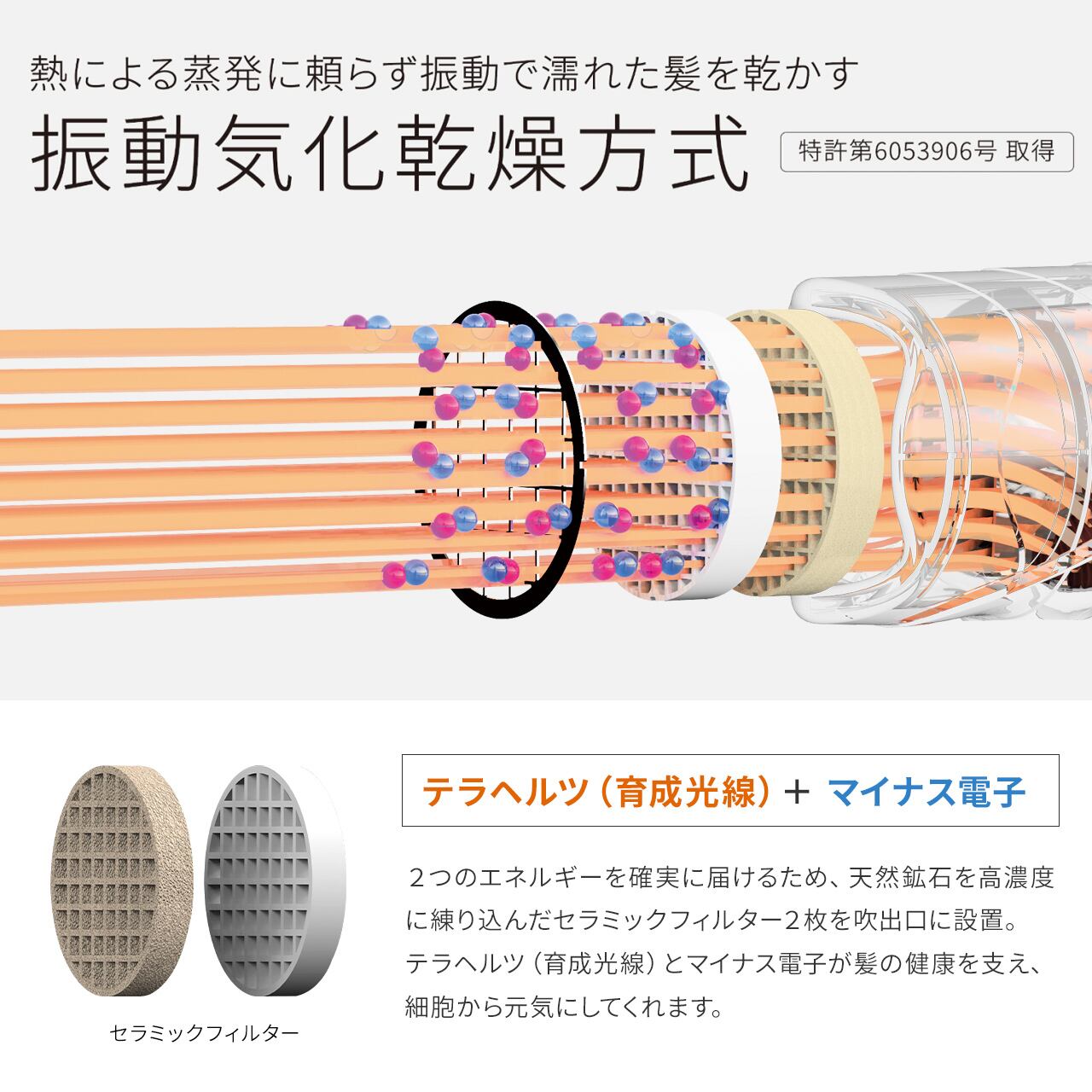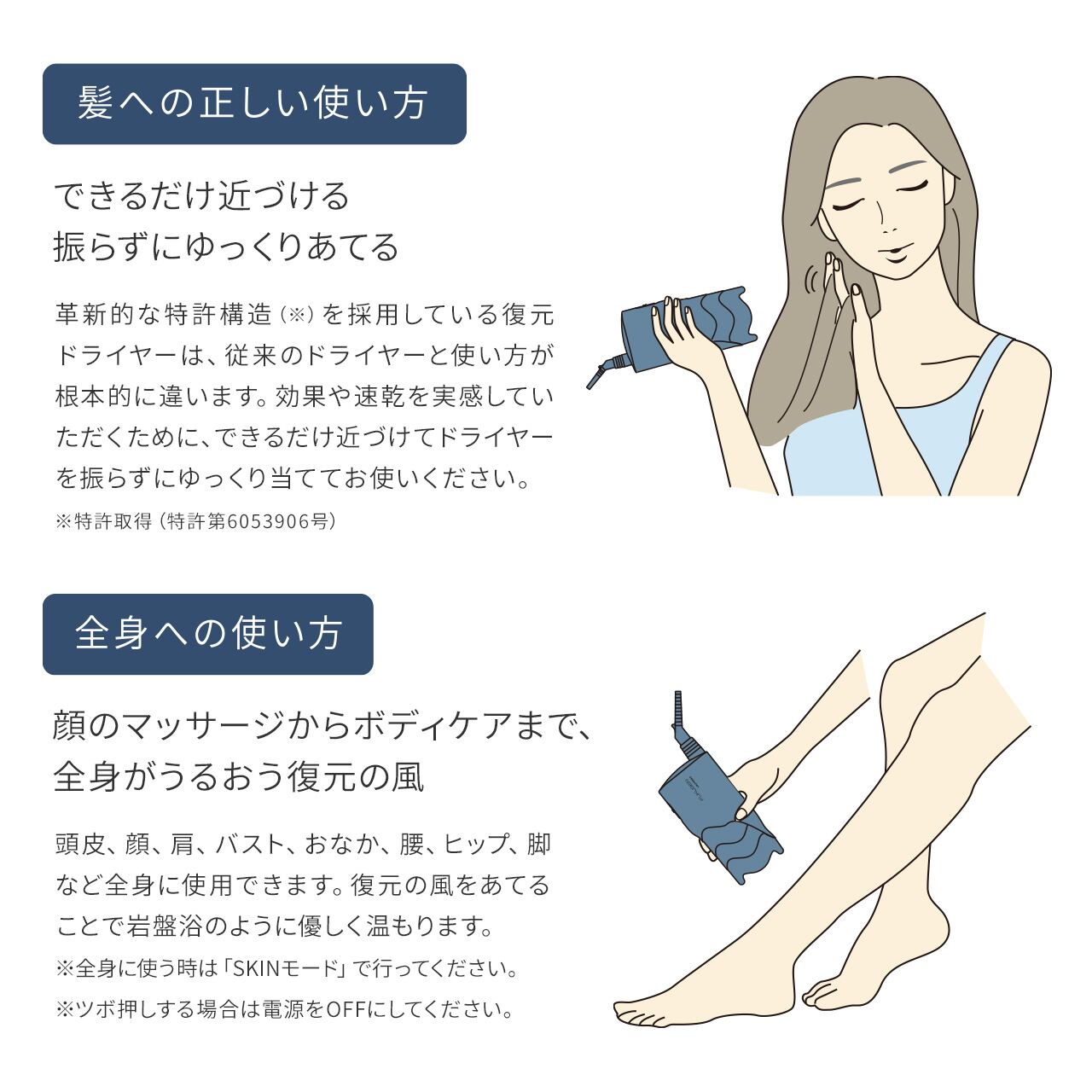「近づける、振らない、ゆっくり当てる」と、速乾・ツヤ・潤い効果を最大限に実感いただけます。